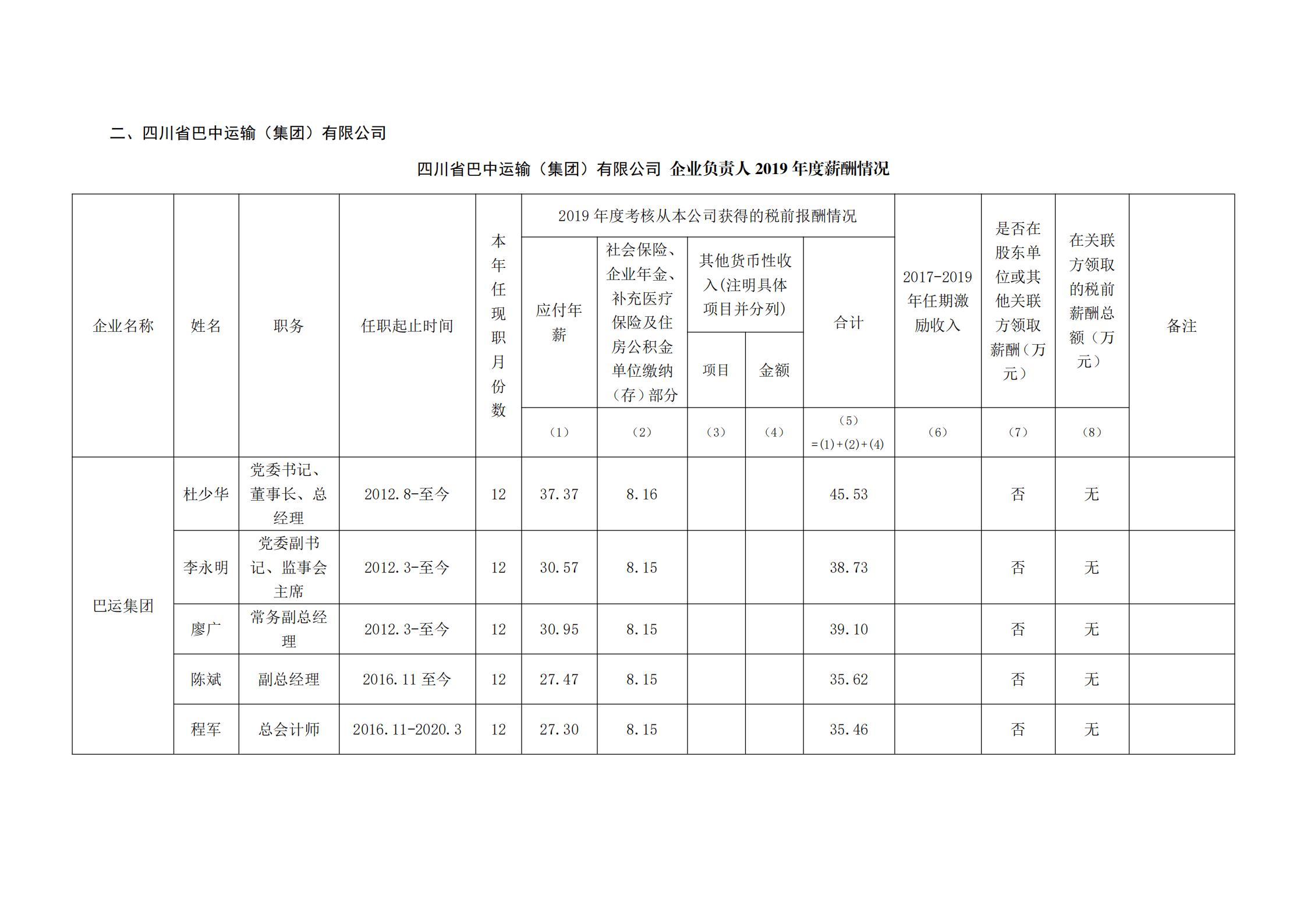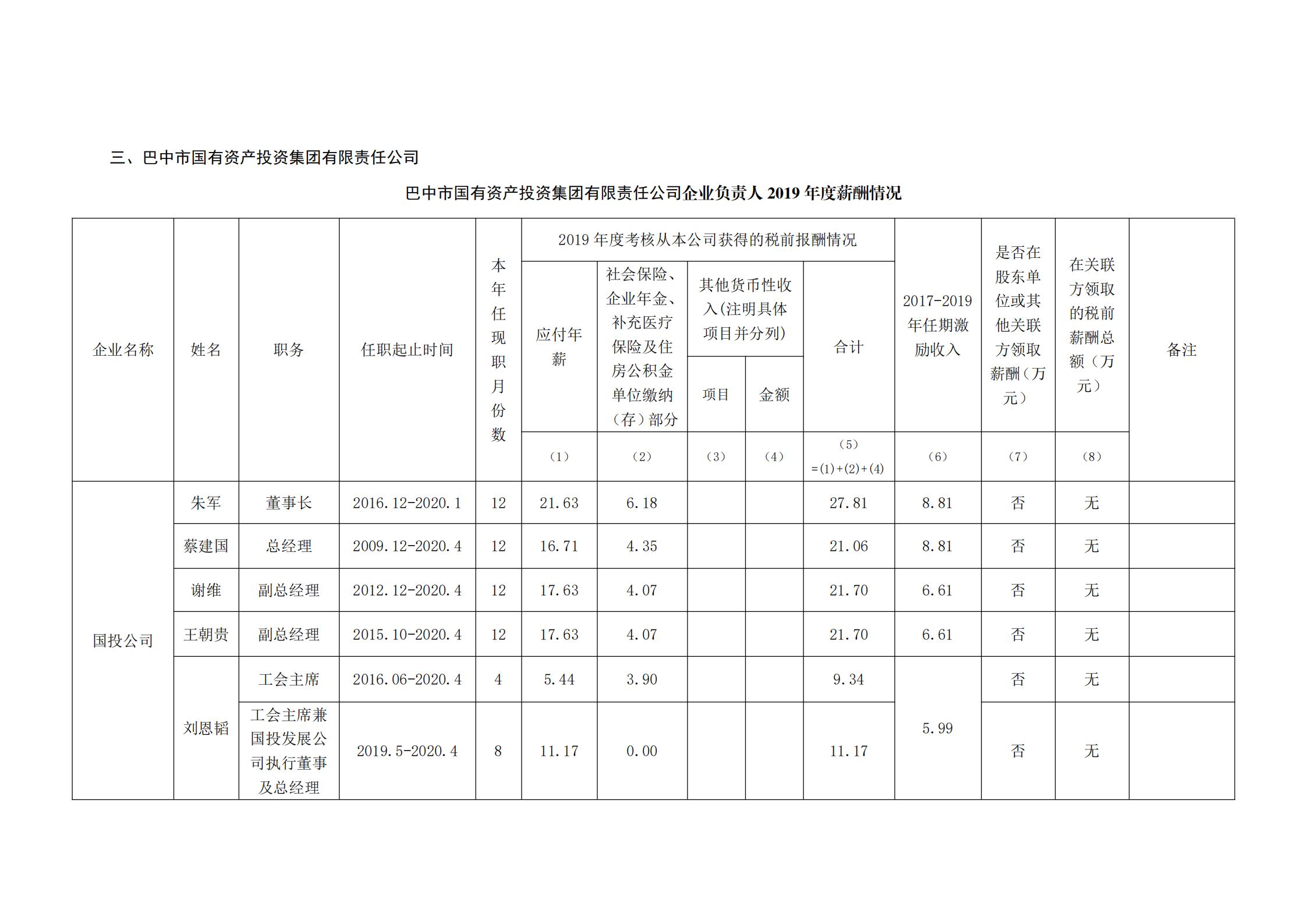 企業(yè)負(fù)責(zé)人2019年度薪酬情況公示